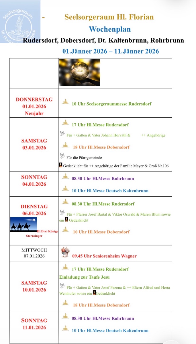Anbei finden Sie die aktuelle Gottesdienstordnung des Seelsorgeraumes Hl. Florian.